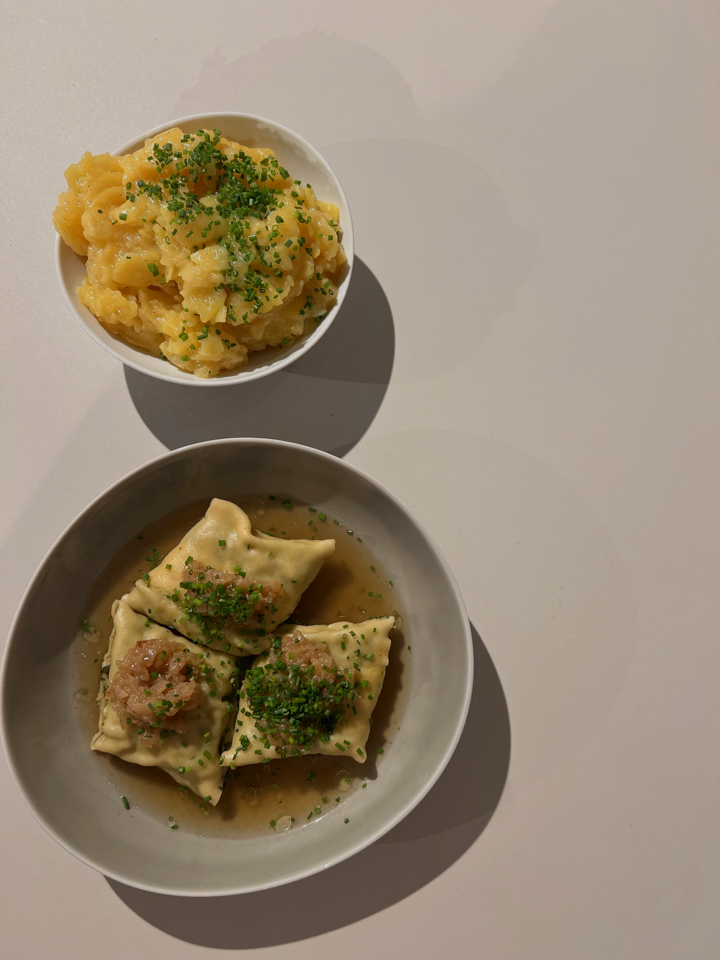 Donnerstags bei einem Glas Wein seine Maultaschen Box für das Wochenende abholen.